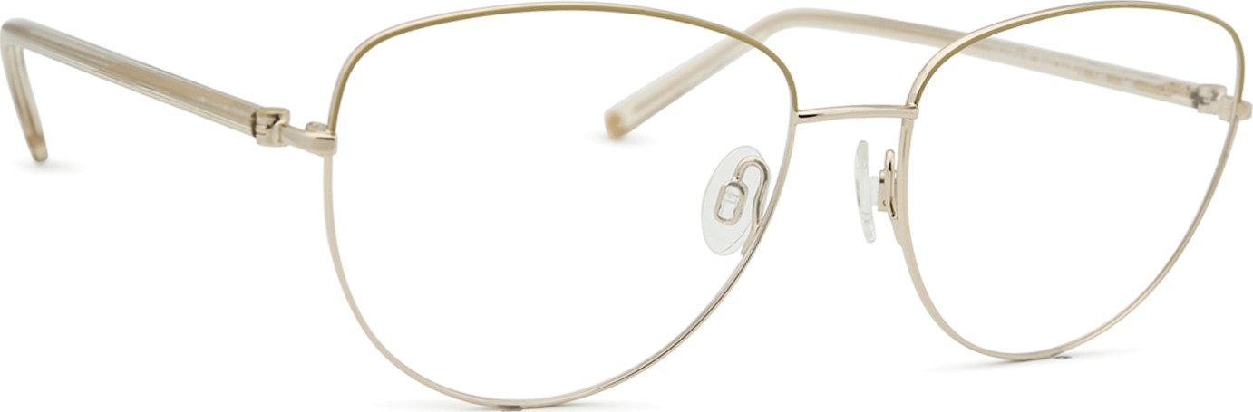 - Златният цвят на рамката перфектно съвпада с топли тонове на кожата и тъмнокафява коса.