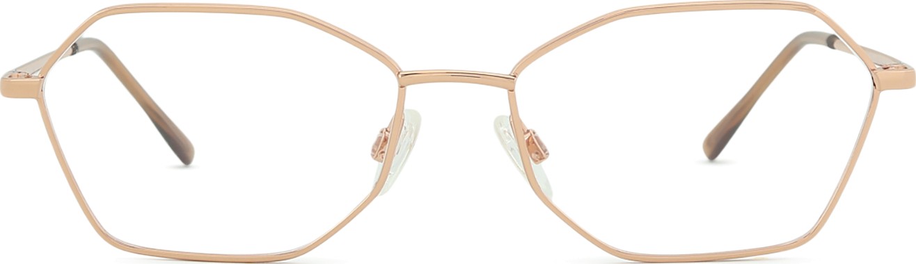 - Златният цвят на рамката перфектно съвпада с топли тонове на кожата и тъмнокафява коса.