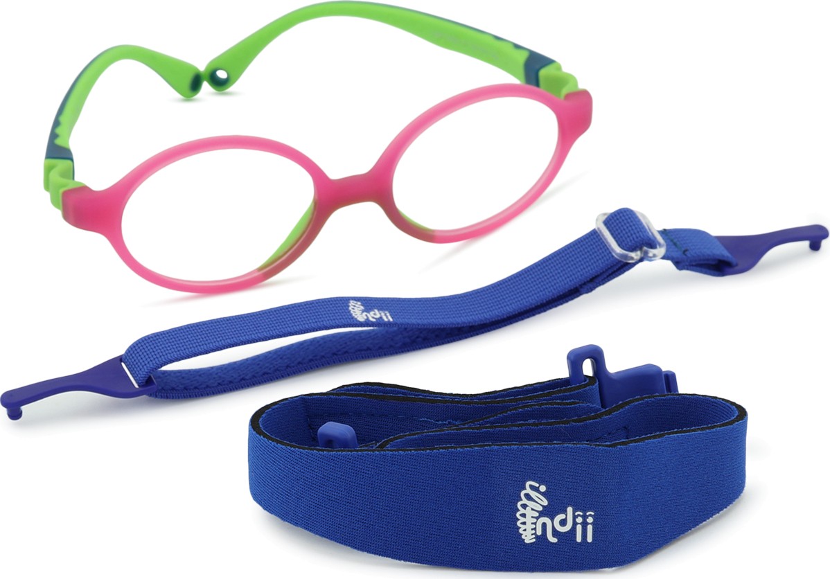 Моделът Indii Kids IN има две регулируеми текстилни каишки, които помагат да се премахне рискът от загуба на очилата и осигуряват по-добро закрепване на главата по време на различни детски дейности.