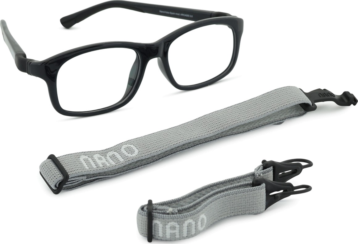 Моделът Arcade 3.0 има две регулируеми текстилни каишки, които помагат да се премахне рискът от загуба на очилата и осигуряват по-добро закрепване на главата по време на различни детски дейности.