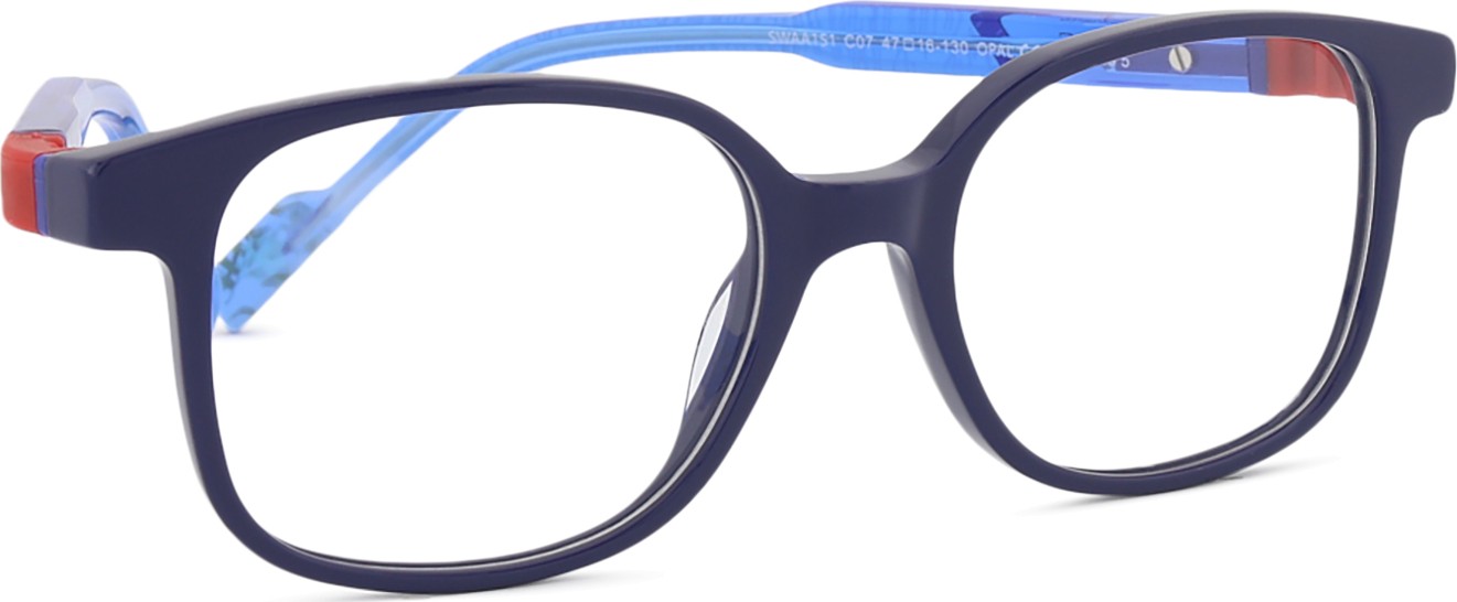 - Синият цвят на рамката перфектно съвпада с хладни тонове на кожата и светлокафява, черна или светло руса коса.